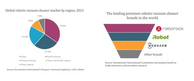 PEKÍN, 13 de septiembre de 2022 /PRNewswire/ -- Según los datos publicados recientemente por Euromonitor, las ventas minoristas mundiales de aspiradoras robot superaron los 15 millones de unidades en 2021, lo que representa una tasa compuesta de crecimiento anual superior al 20 % en los últimos cinco años. En particular, la región de Asia Pacífico representó alrededor del 44,2 % del total, lo que la convierte en el mercado de aspiradoras robot más grande del mundo. Las aspiradoras robot de alta gama, que en general tienen un precio superior a los USD 500, ofrecen un rendimiento muy superior en términos de inteligencia y eficiencia en la limpieza en comparación con los modelos estándar. El año pasado, los modelos de alta gama representaron más del 30 % del total de ventas de aspiradoras robot. Varias marcas de alta gama, como Roborock e iRobot, ocuparon en conjunto más del 80 % del mercado global. En particular, Roborock ocupó el primer lugar entre los fabricantes de aspiradoras robot de todo el mundo en términos de ventas de modelos de alta gama durante los 12 meses transcurridos entre julio de 2021 y junio de 2022.