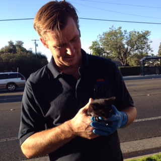 After a routine estimate, Roto-Rooter plumber Mike Jennings was able to free a trapped kitten in 10 minutes.