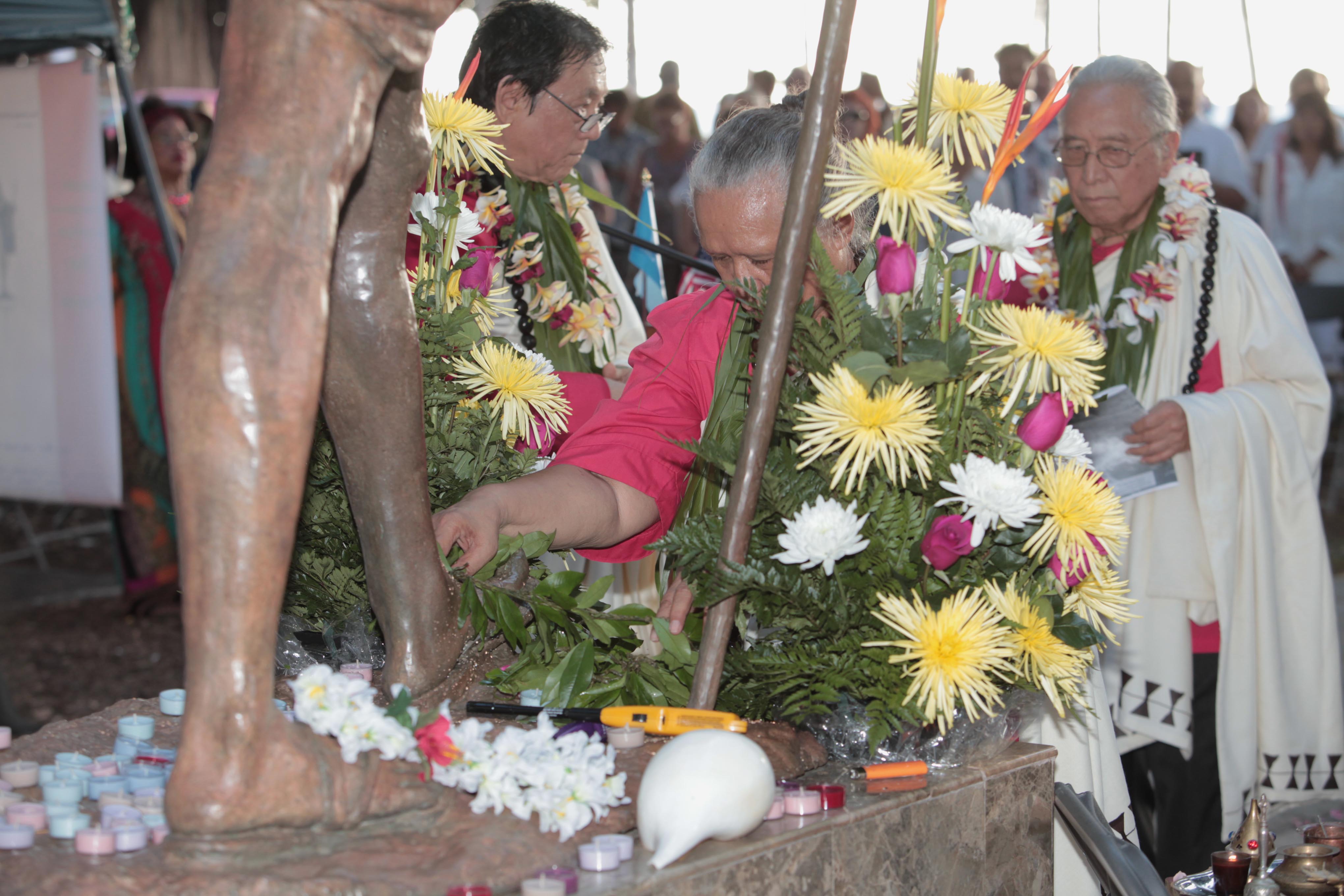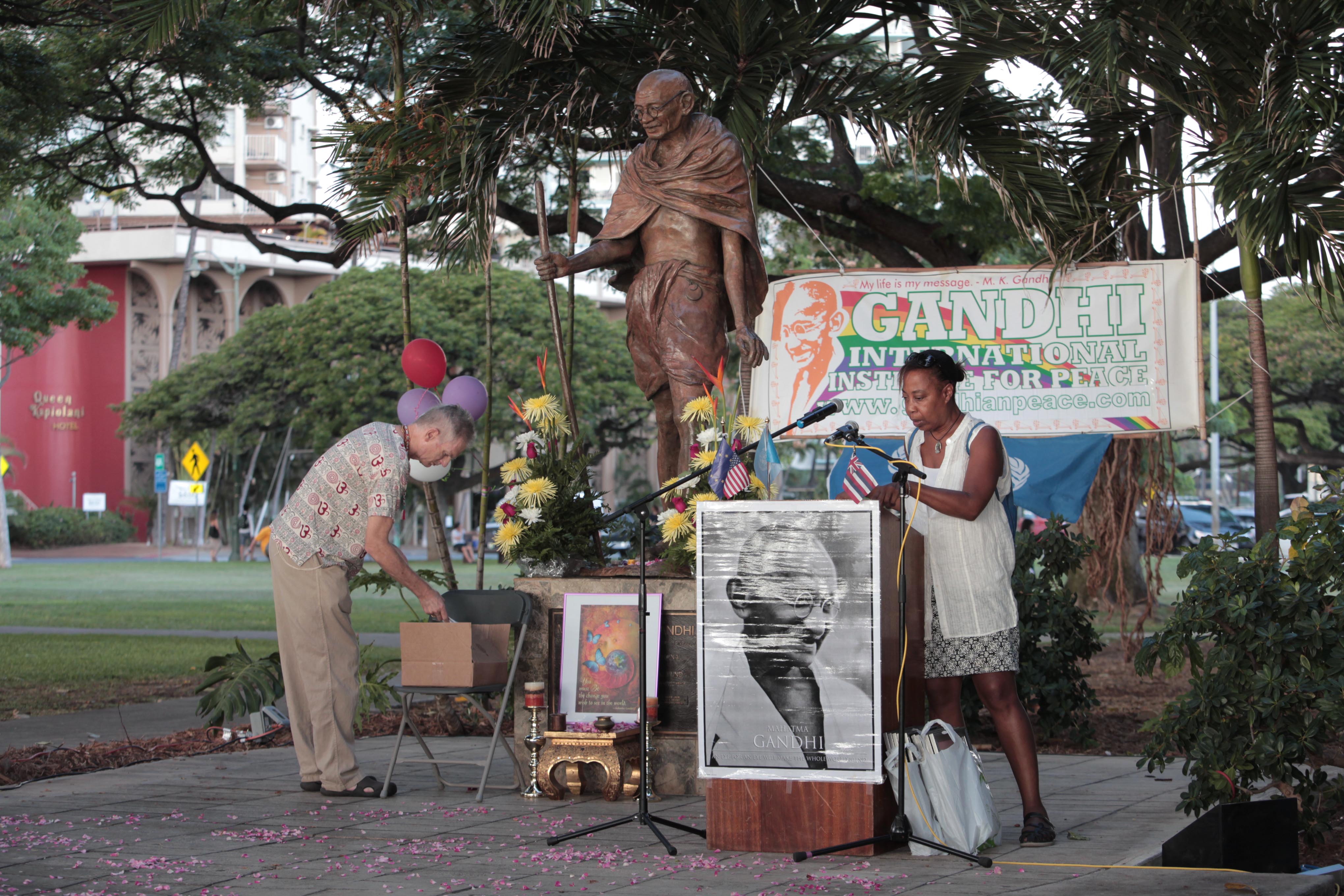 Jeannie Bishop, president of Science of Identity Foundation, said: "Today's celebration was especially unique, because there was a palpable sense in the air that people were determined to follow the example set by Mahatma Gandhi, and that even in the wake of yesterday's tragedy, love would triumph hate, and violence would be overcome with aloha."