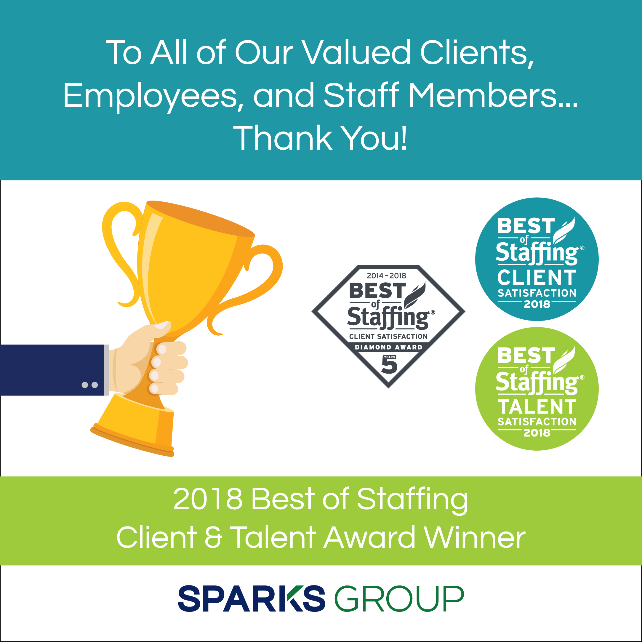 Sparks Group Has Been Selected to the 2018 Best of Staffing Client and Talent Lists!