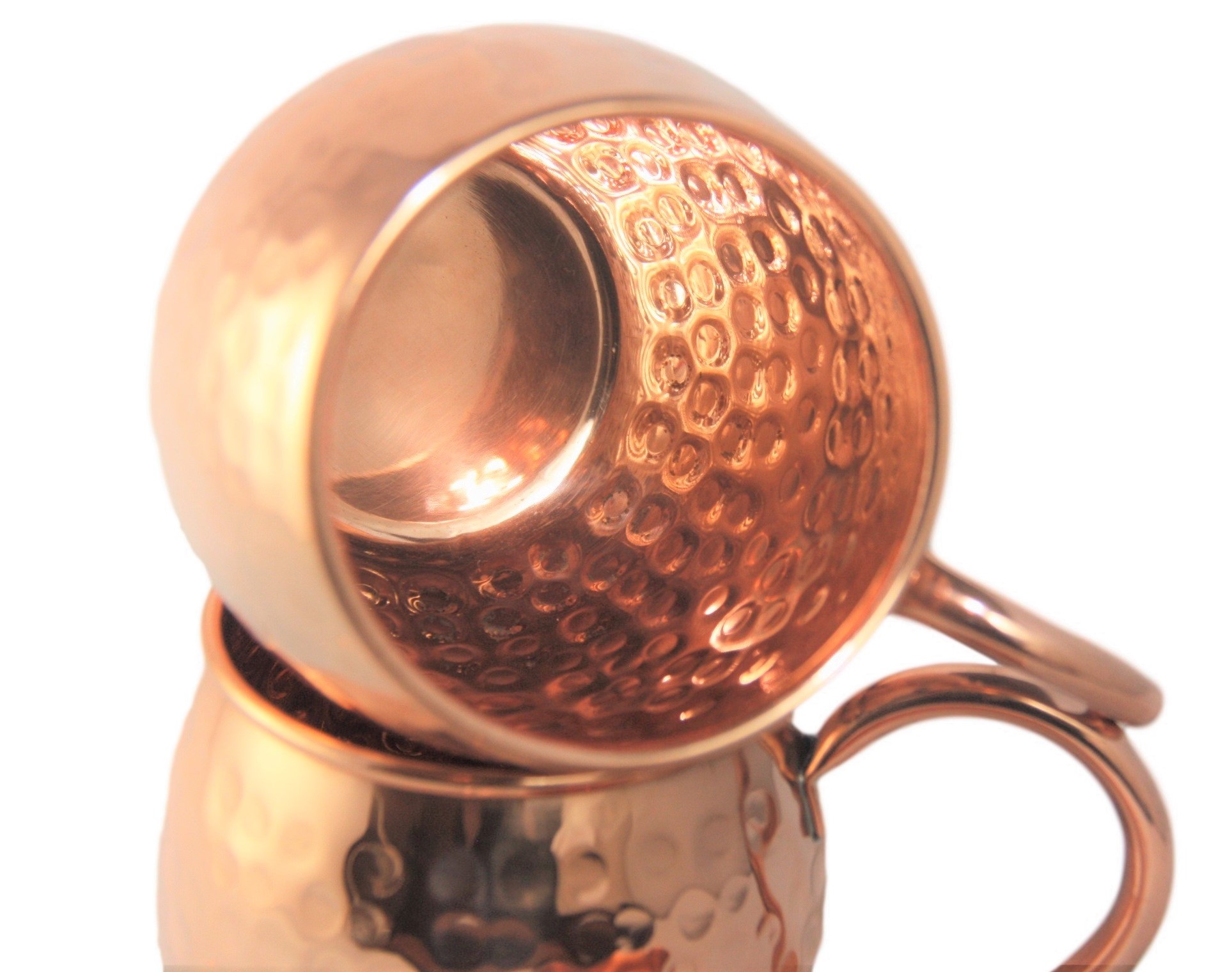 - SUPERIOR HANDCRAFTED QUALITY When looking for your Copper mugs these are the points you need to consider: 1- make sure they are 100% Pure Solid Copper with NO nickel, tin, stainless steel or cheap metal. And without lacquer on the inside for a real copper mug experience. 2-The best size is-16oz. 3-ensure it's made with thick 22-gauge copper. 4- get handcrafted with a beautiful hammered vintage finish. 5- get a large handle for an extra comfort hold that is welded on (NO RIVETS) to ensure these mugs never leaks.