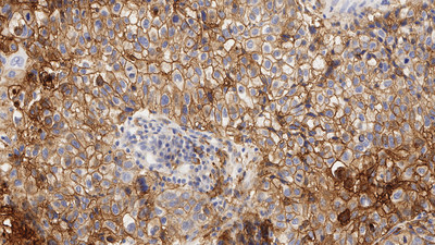 El nuevo anticuerpo PD-L1 (muerte programada - ligando 1) usa el MKP1A07310 (clon 73-10) expresado por Abcam –con sede en Reino Unido- en nombre de Merck KGaA -con sede en Darmstadt, Alemania- que posee todos los derechos de propiedad intelectual de este anticuerpo. Se une al recientemente presentado anticuerpo ALK (kinasa linfoma anaplásico) como la última incorporación al creciente menú de anticuerpos primarios de pulmón de Novocastra.