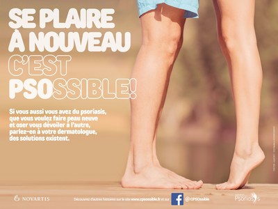 Le 15 mai, l'association de patients France Psoriasis et Novartis lancent une campagne nationale de sensibilisation sur le psoriasis. Intitulée « C'est PSOssible ! » elle comporte deux volets, l'un en TV, affichage et sur différents media, le second digital, plus intimiste, mettant en lumière un projet artistique mené avec des patients atteints de psoriasis. Le but : sensibiliser le grand public, changer le regard sur les personnes souffrant de psoriasis et montrer qu'un re-nouveau « c'est PSOssible ! ».