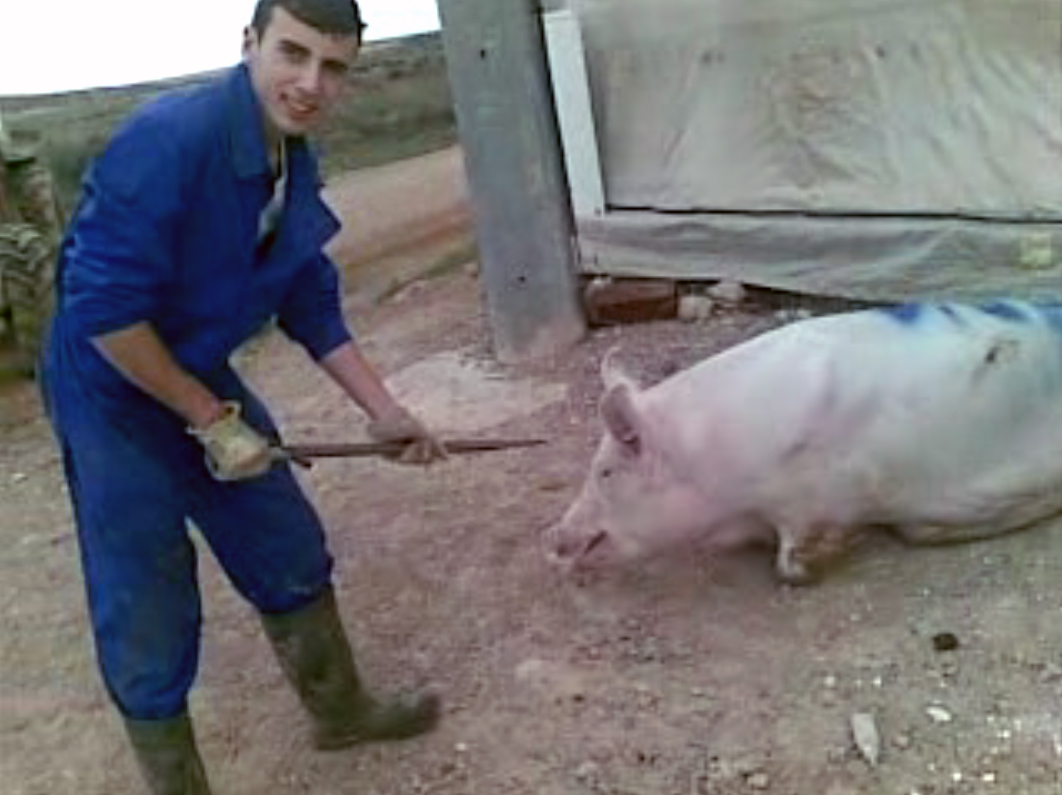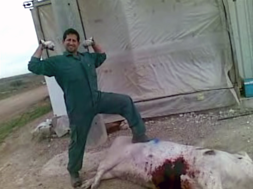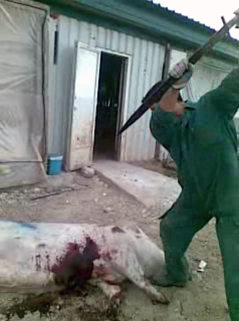 The images, which were captured by one of the workers, showed farm staff brutally hitting pigs with iron bars and stabbing them with swords while mocking their suffering in front of the camera. The video also shows one of the workers opening up a pregnant pig's abdomen and uterus with a knife in order to remove her babies while she was still conscious.