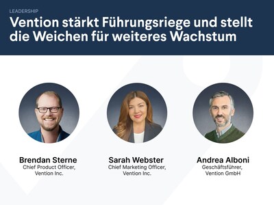 MONTREAL, 19. November 2024 /PRNewswire/ -- Vention, der Erfinder der weltweit einzigen cloudbasierten Full-Stack-Automatisierungsplattform, gab heute die Ernennung von drei neuen Führungskräften bekannt. Die Verstärkung des Teams erfolgt in einer Phase, in der das Unternehmen durch sein einzigartiges Geschäftsmodell Marktanteile in der industriellen Automatisierung gewinnt.