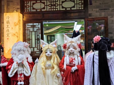 A special guest is the anime-style fursuit IP "Nine-Tails Lingjiu". Previously, several scenic spots were accused of copying its unique design. The original character appeared at Lingran Workshop in the industrial park and joined the parade to showcase the charm of authentic creative design.