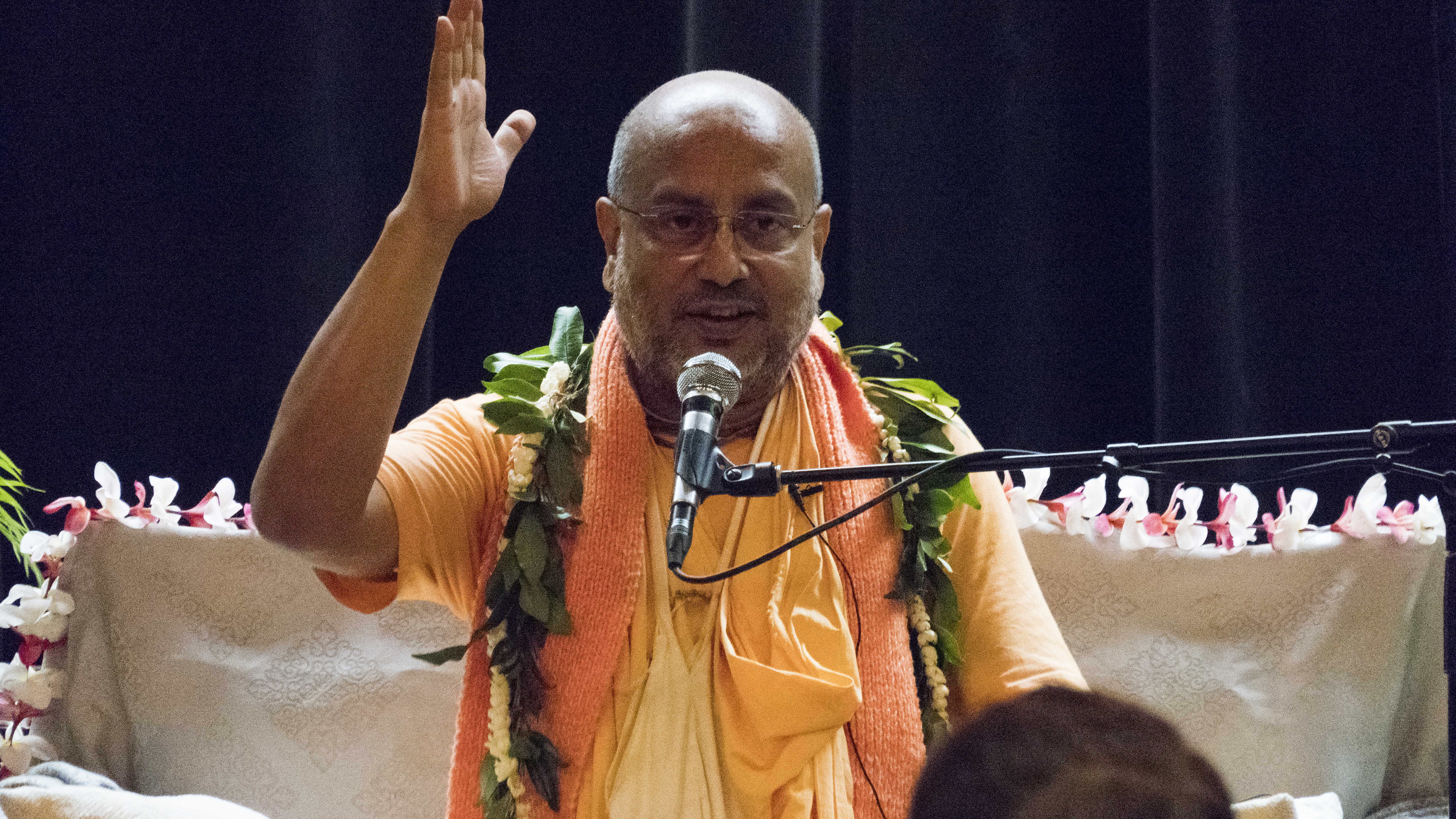 The message he delivered was particularly aimed at those who are seeking happiness in the material world. "If we really want to become happy," said Swami Bodhayan, "we must connect with the source of happiness, God. And we can easily link to God by the transcendental sound of His Holy Names."