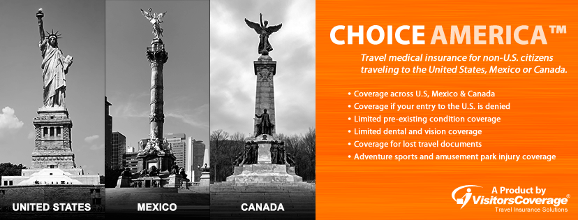Coverage in the North American continent (U.S., Canada, Mexico): ChoiceAmerica covers non-U.S. citizens and non-U.S. permanent residents traveling outside of their home country to the United States, Mexico, and Canada. It is the only plan that covers this category of travelers throughout the entire North American Continent. So, for example, if a US traveler is taking a cruise to Mexico, this is the plan that covers them.