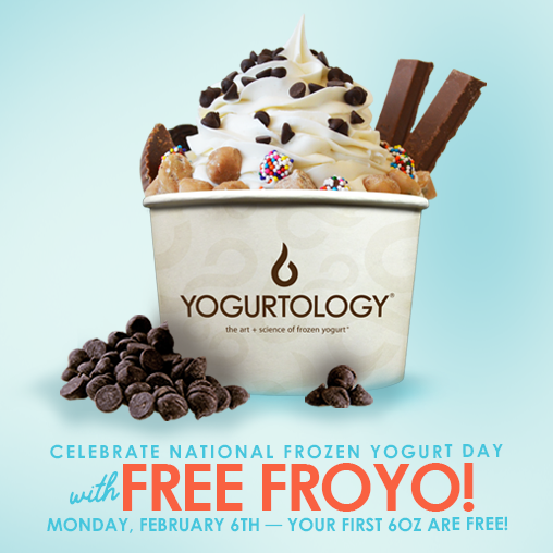 TAMPA, Fla., Feb. 3, 2017 /PRNewswire/ -- On Monday, February 6, 2017, Yogurtology locations throughout the United States will celebrate National Frozen Yogurt Day with the sweetest of deals. Customers may visit a participating location to receive their first six ounces of frozen yogurt free.
