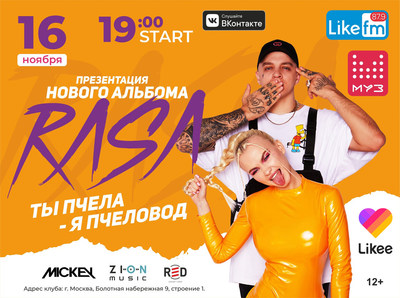 МОСКВА, 12 ноября 2019 г. /PRNewswire/ -- Ведущий сервис по созданию коротких видеороликов Likee и звукозаписывающая компания Zion Music объединились для продвижения первого сольного концерта группы RASA, который состоится 16 ноября 2019 года в клубе RED на «Красном октябре».